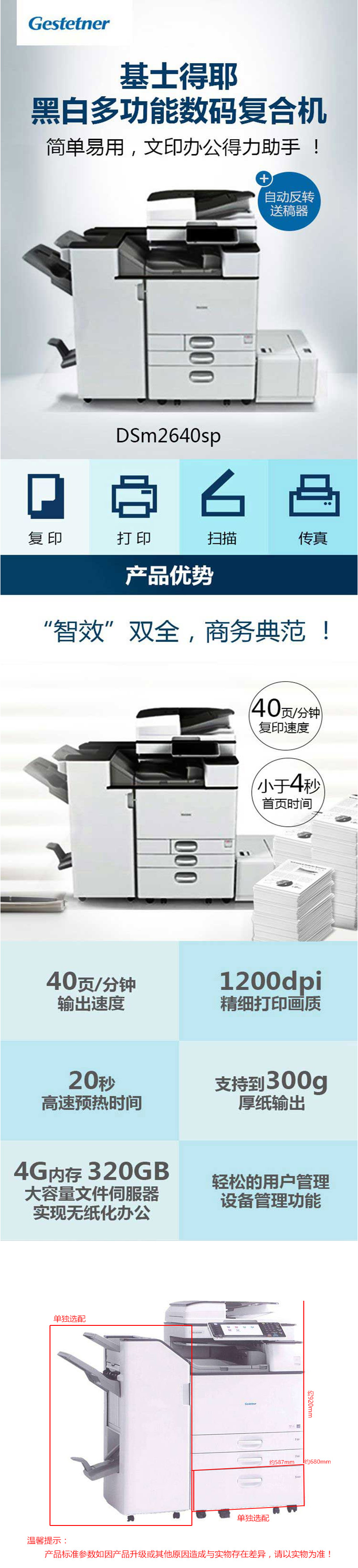 - 商品名稱:基士得耶(GESTETNER)DSm2640sp A3黑白數(shù)碼多功能復合機 含自動送稿器