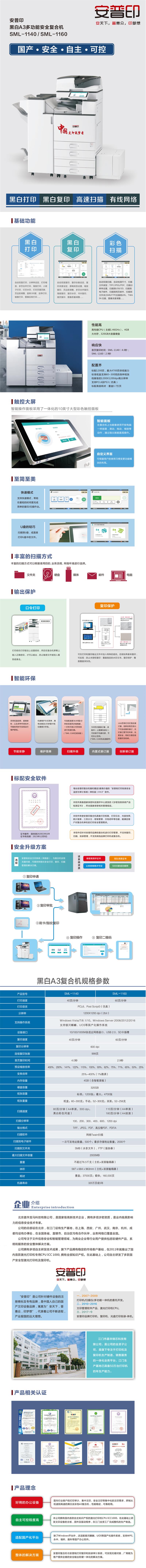 - 商品名稱:安普?。⊿ecuPrint)SML-1140 A3黑白商用國產(chǎn)安全復(fù)合機(jī)( 主機(jī)+雙面送稿器+四紙盒+1000頁小冊子裝訂)
