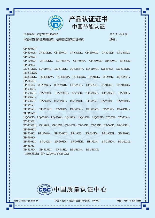 • 節(jié)能產(chǎn)品證書(shū)編號(hào):CQC21701326607