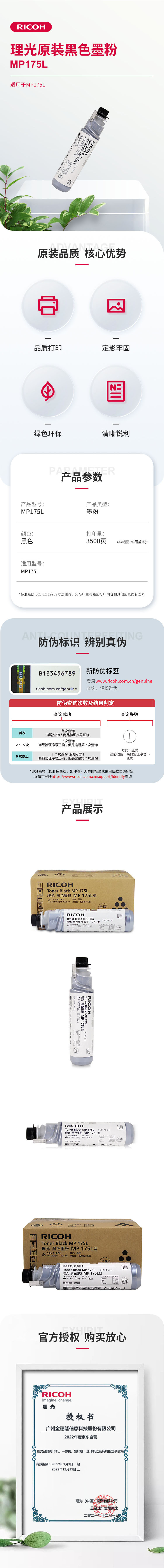 • 商品名稱:理光(RICOH)碳粉MP175L型(3,500頁)