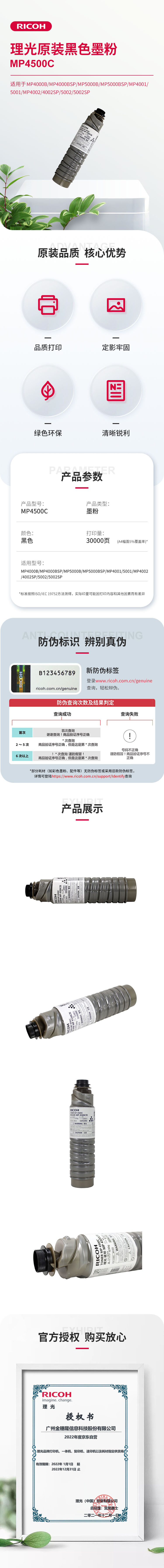 • 商品名稱:理光 碳粉MP4500C型 (4支/箱) - 1支(30,000頁(yè))