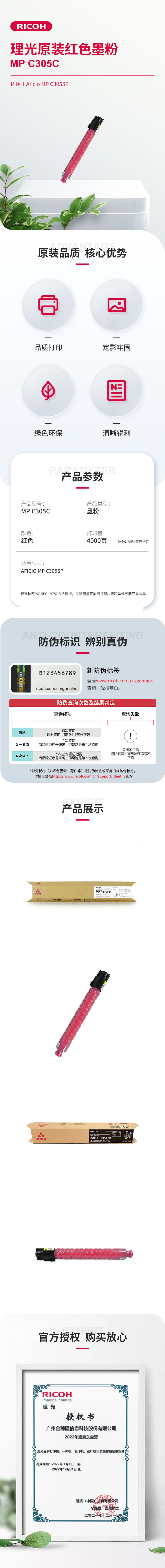 • 商品名稱:理光 紅色碳粉盒MP C305C型 - 1支(4,000頁)