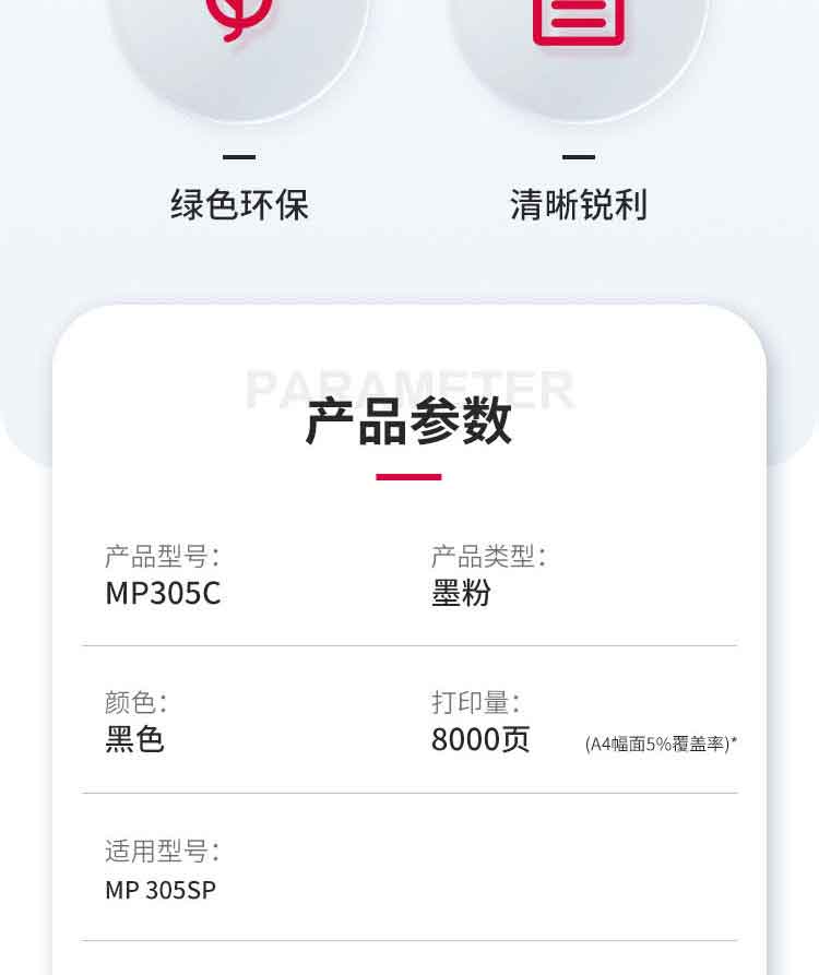 • 商品名稱:理光 MP305C 碳粉1支裝 適用MP305SP