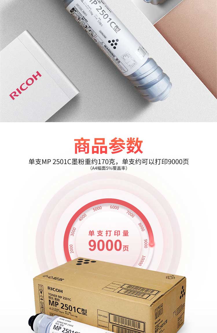 理光 MP 2501C 辦公設(shè)備墨粉1支裝 適用于MP 1813L/2013L/2001L/2501L/2001SP/2501SP