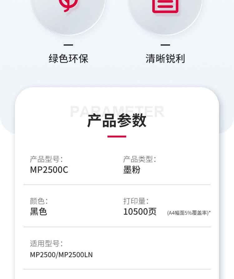 • 商品名稱:理光 MP 2500C 碳粉1支裝 適用MP2500/MP2500LN