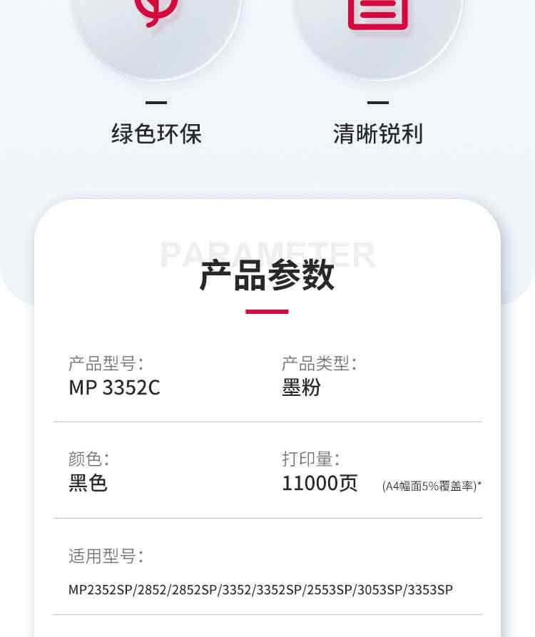 • 商品名稱:理光 MP 3352C型 黑色碳粉墨粉 適用MP2352SP/2852/2852SP/3352/3352SP MP2553SP/3053SP/3353SP