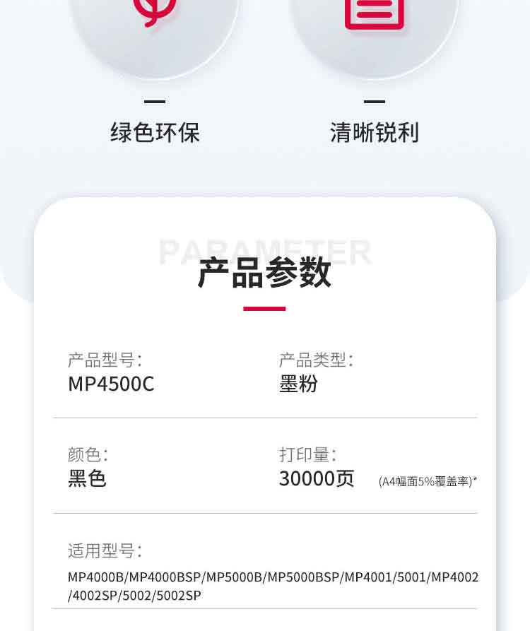 • 商品名稱:理光 MP 4500C 黑色原裝墨粉盒 適用MP4000B/MP4000BSP/MP5000B/MP5000BSP/ MP4001/5001/MP4002/4002SP/5002/5002SP