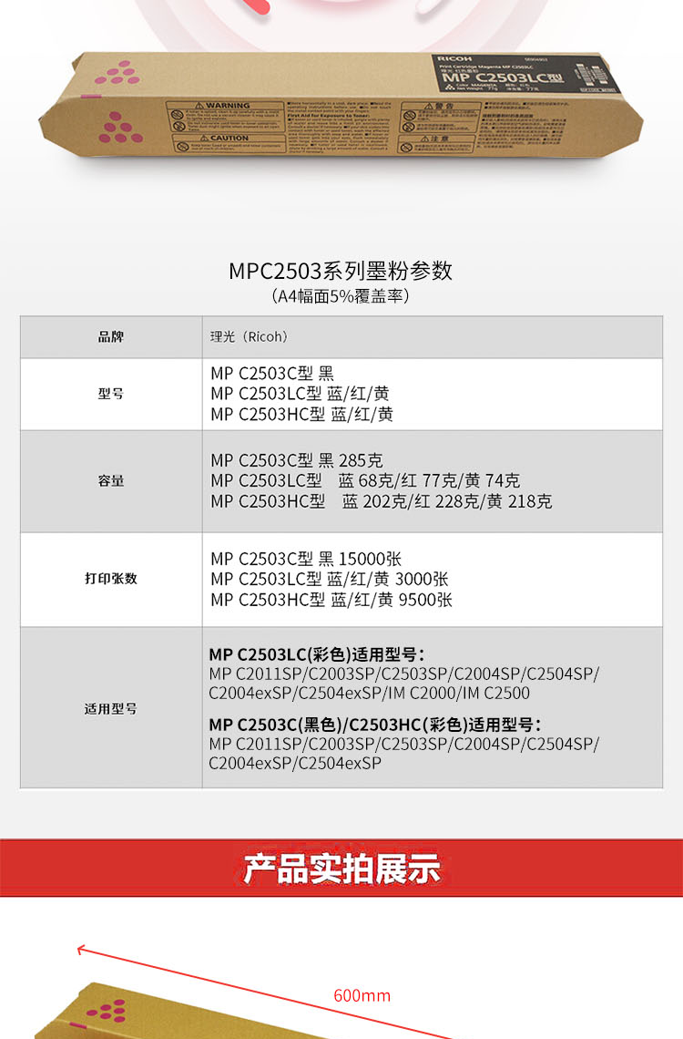 • 商品名稱:理光 MPC2503LC 紅色碳粉盒1支裝 適用MP C2003SP/C2503SP/C2011SP/C2004SP/C2504SP/IM C2000/C2500