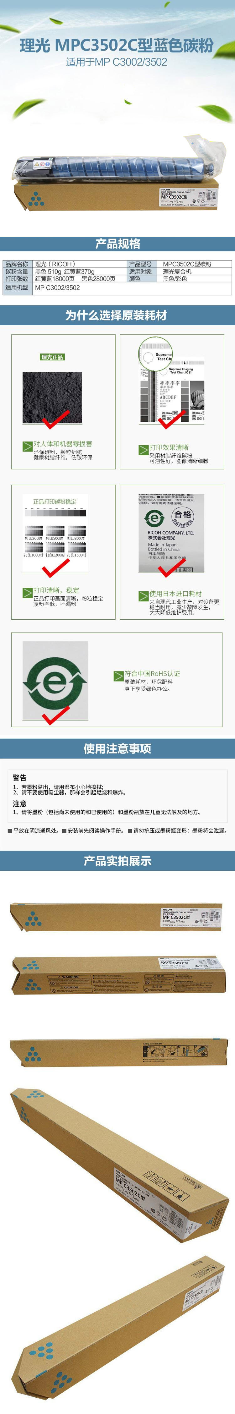 • 商品名稱:理光 MPC3502C 藍(lán)色碳粉盒1支裝 適用MP C3002/3502