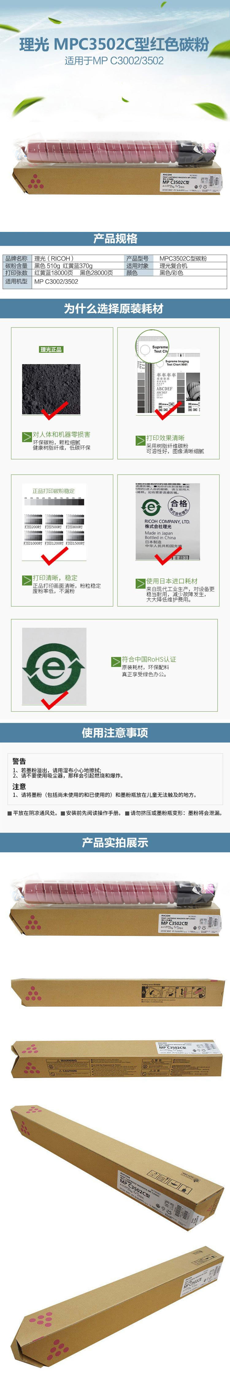 • 商品名稱:理光 MPC3502C 紅色碳粉盒1支裝 適用MP C3002/3502