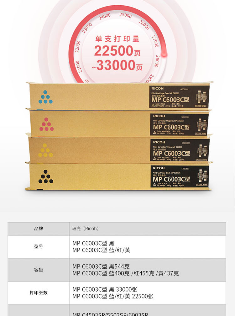 • 商品名稱:理光 MPC6003C 黑色碳粉盒1支裝 適用MP C4503SP/C5503SP/C6003SP MP C4504SP/C6004SP MP C4504exSP/C6004exSP