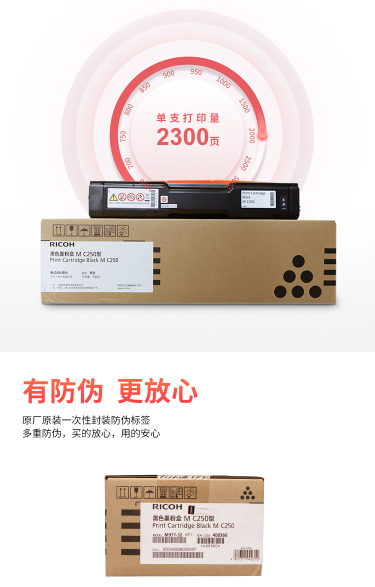 理光 M C250型 黑色墨粉盒 適用于P C300W/M C250FWB