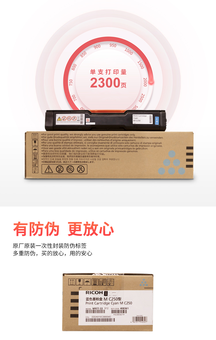 理光 M C250型 藍(lán)色墨粉盒 適用于P C300W/M C250FWB