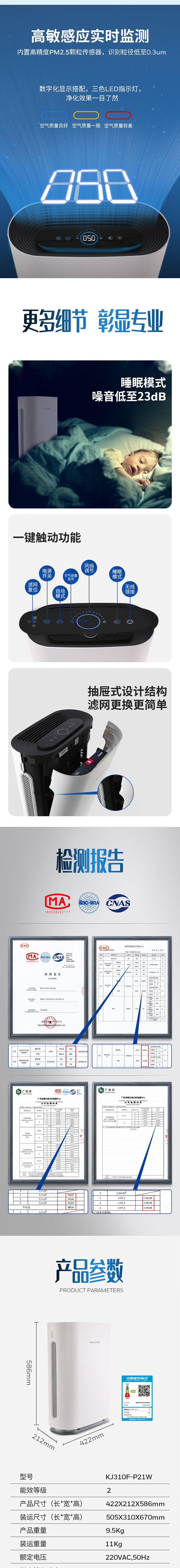 • 商品名稱:霍尼韋爾(Honeywell)KJ310F-P21W 家用辦公