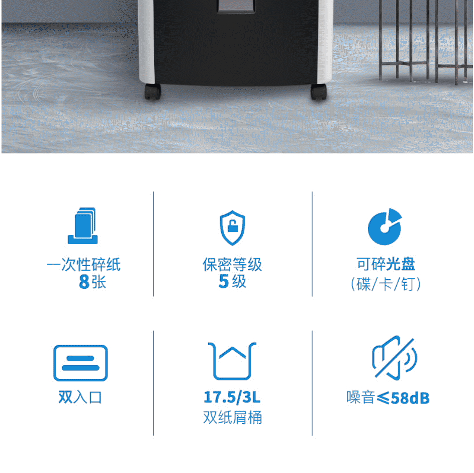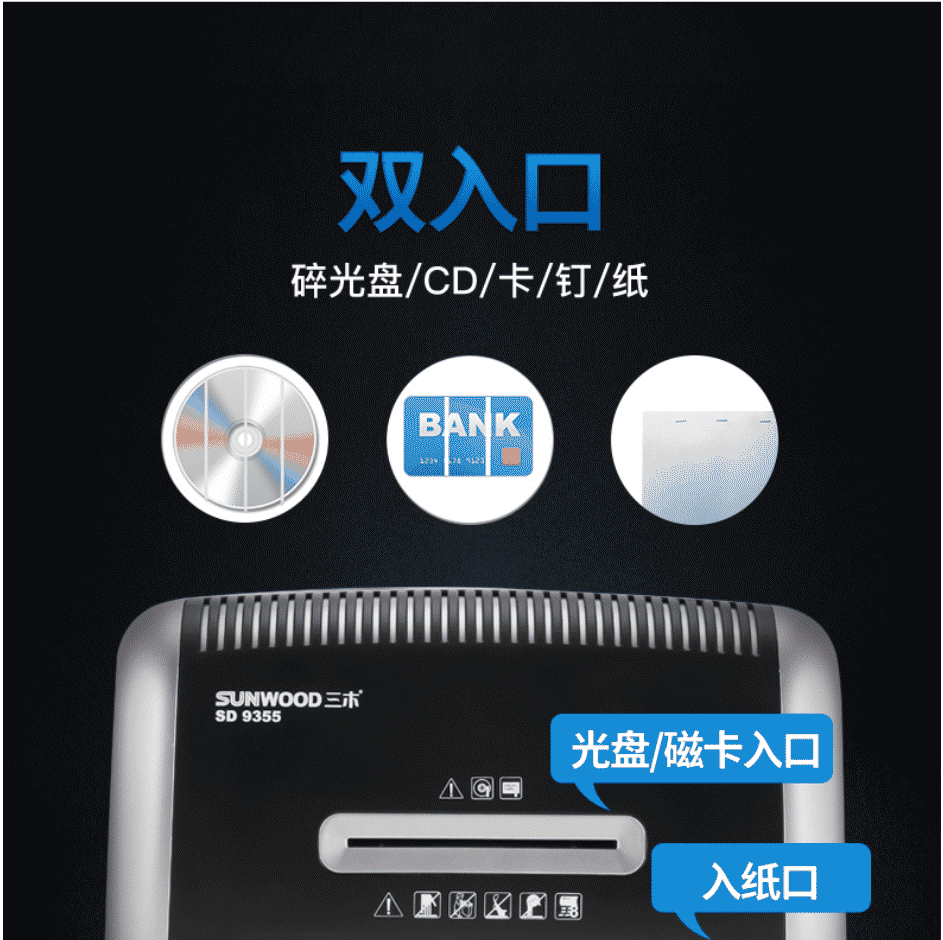 • 商品名稱:三木 SD9355 錳鋼刀系列碎紙機 17.5/3L 5級保密 雙入口碎光盤 銀黑色