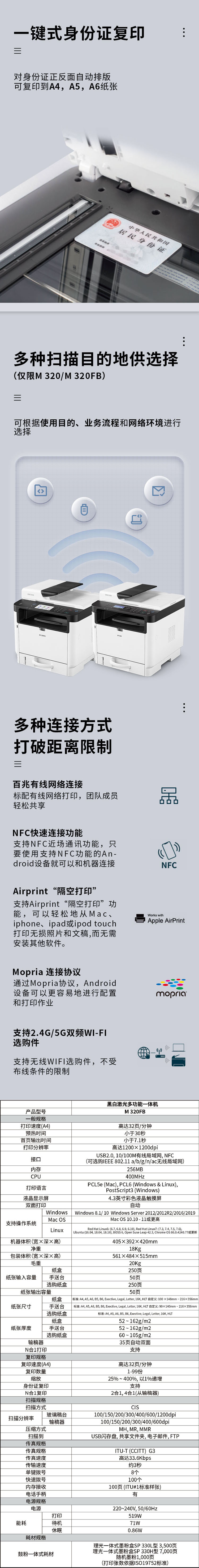 - 商品名稱:理光(Ricoh)M 320FB A4黑白激光多功能一體機(jī) 打印復(fù)印掃描傳真