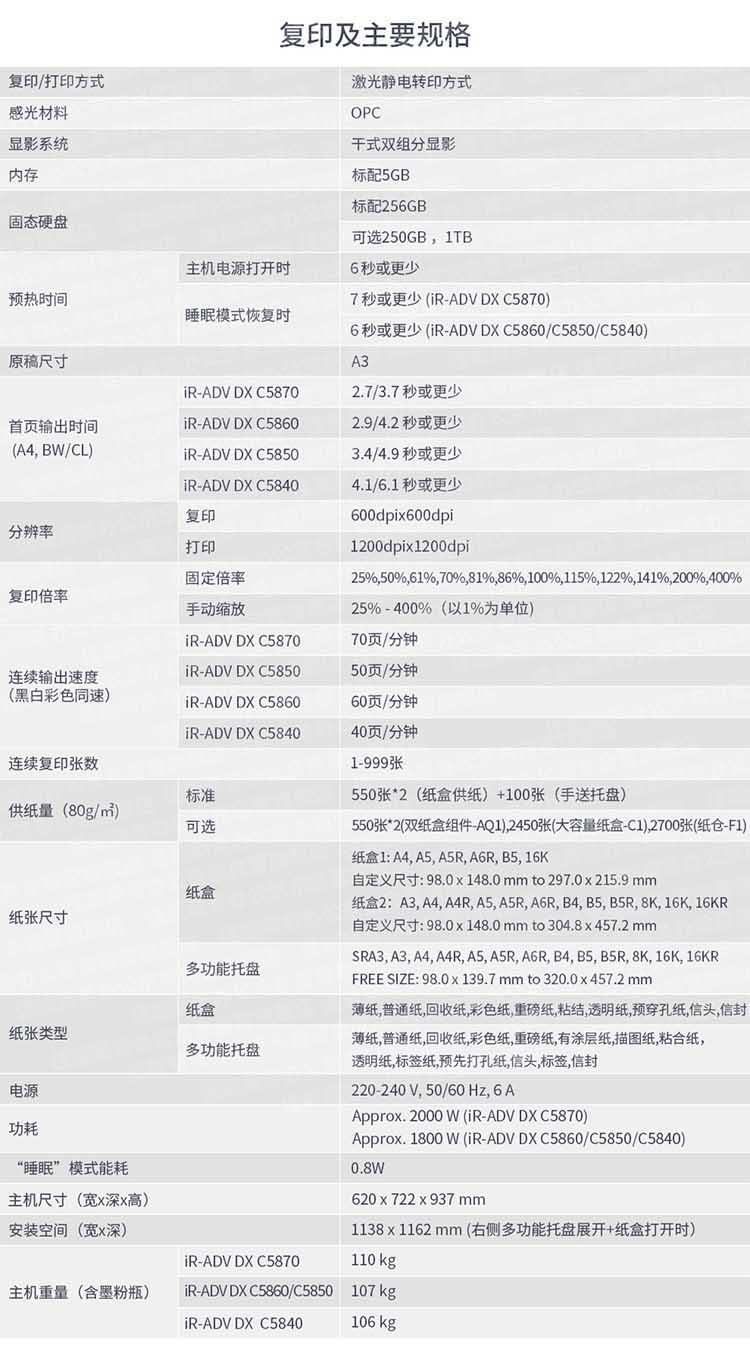 佳能(Canon)imageRUNNER ADVANCE DX C5840 A3彩色數(shù)碼復(fù)合機(jī)含四紙盒+內(nèi)置裝訂