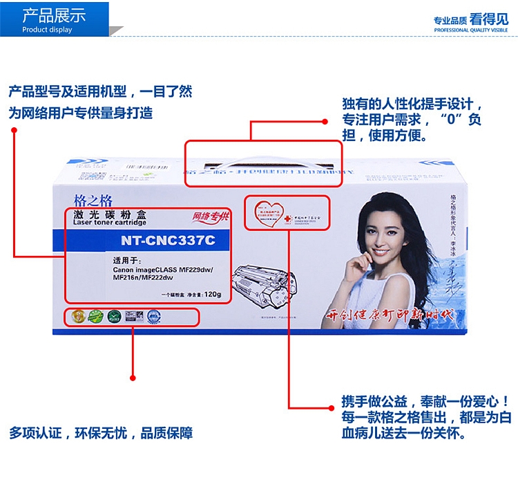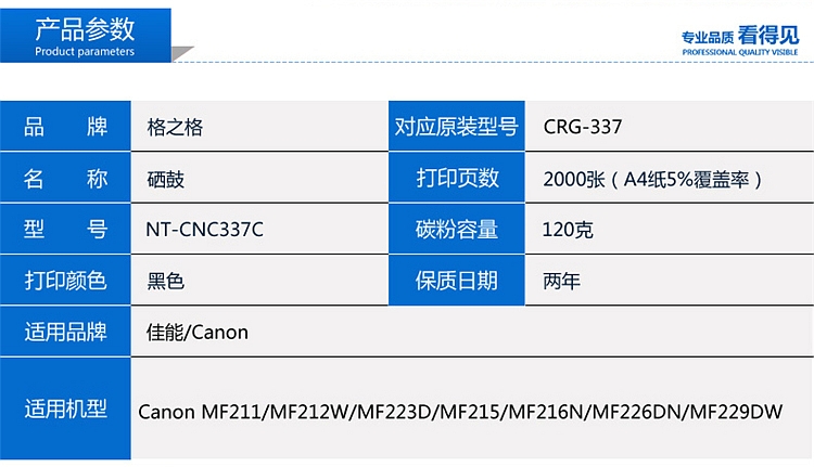 - 商品名稱:格之格NT-CC337C硒鼓 適用于Canon Image Class MF229dw/MF216n/MF222dw/ Canon ImageClassMF217w/MF211/MF212w/MF227dw/MF226dn/MF224dw (CLASS MF232w/MF233n/MF236n/MF243d/MF246dn/MF249dw無機器未驗證)337 337C