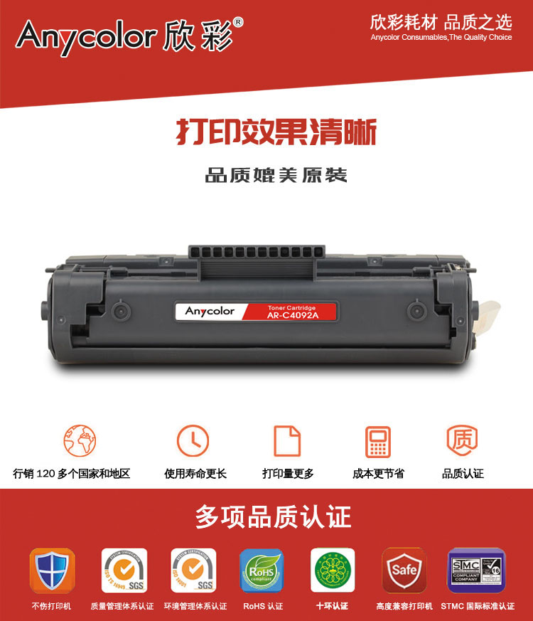 欣彩Anycolor AR-C4092A 黑色硒鼓/墨粉盒 適用惠普C4092A,HP 1100/1100A/3200