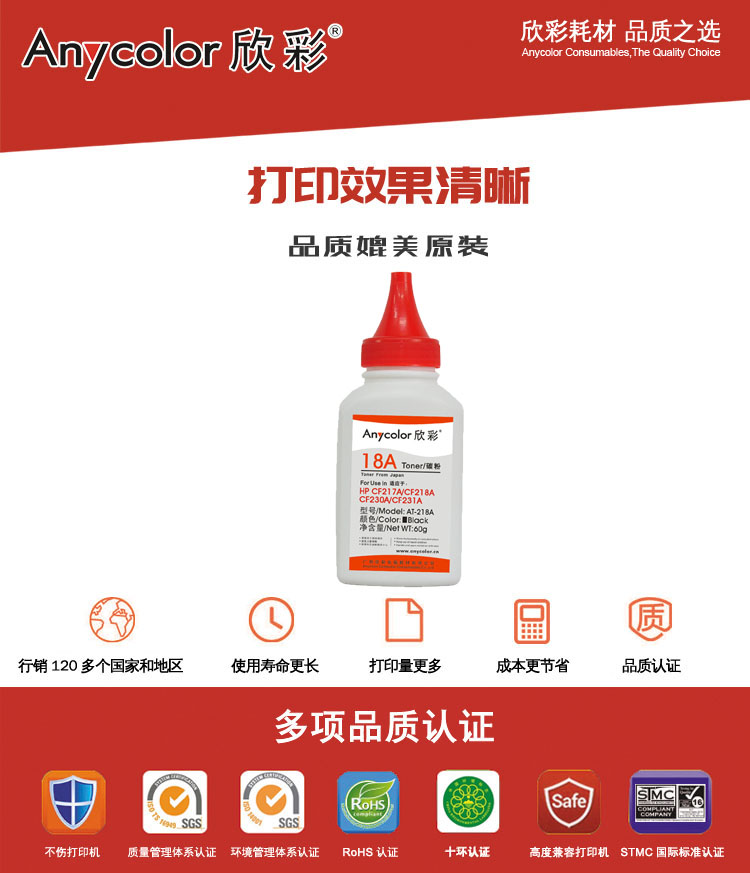 欣彩Anycolor AT-218A(60g)墨粉/碳粉適用惠普CF218A,HP CF217A/CF218A