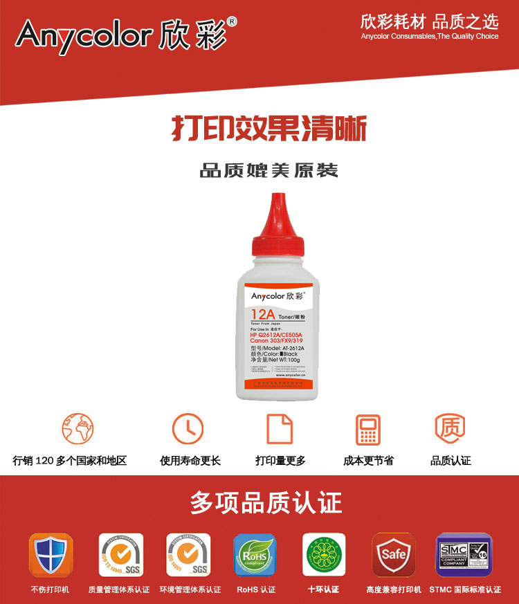 欣彩Anycolor AT-2612A(100g)墨粉/碳粉適用惠普Q2612A,HP Q2612A/CE505A