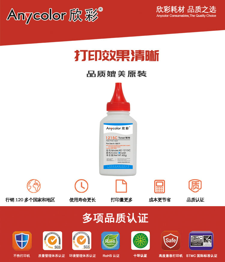 欣彩Anycolor AT-1215C(40g)青色墨粉/碳粉適用惠普CP1215,HP CP1215/1515