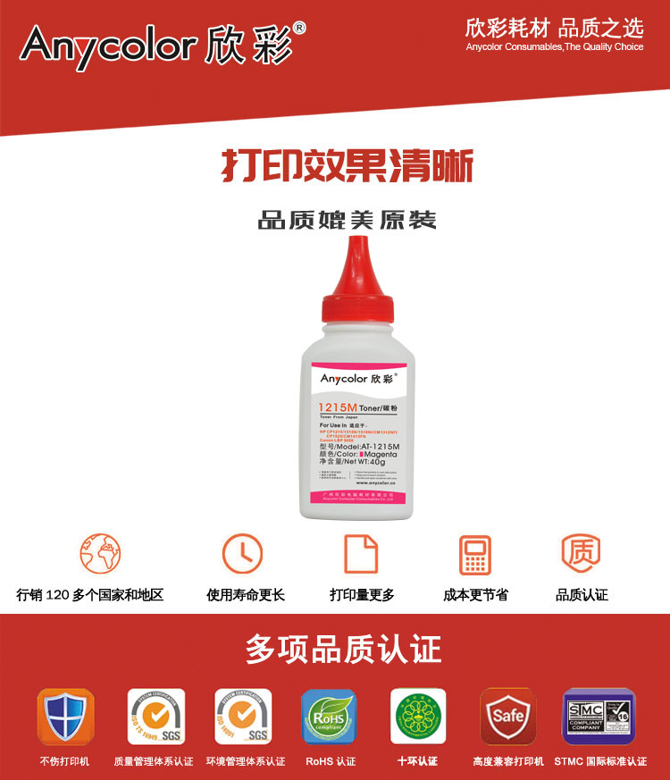 欣彩Anycolor AT-1215M(40g)紅色 墨粉/碳粉適用惠普CP1215,HP CP1215/1515