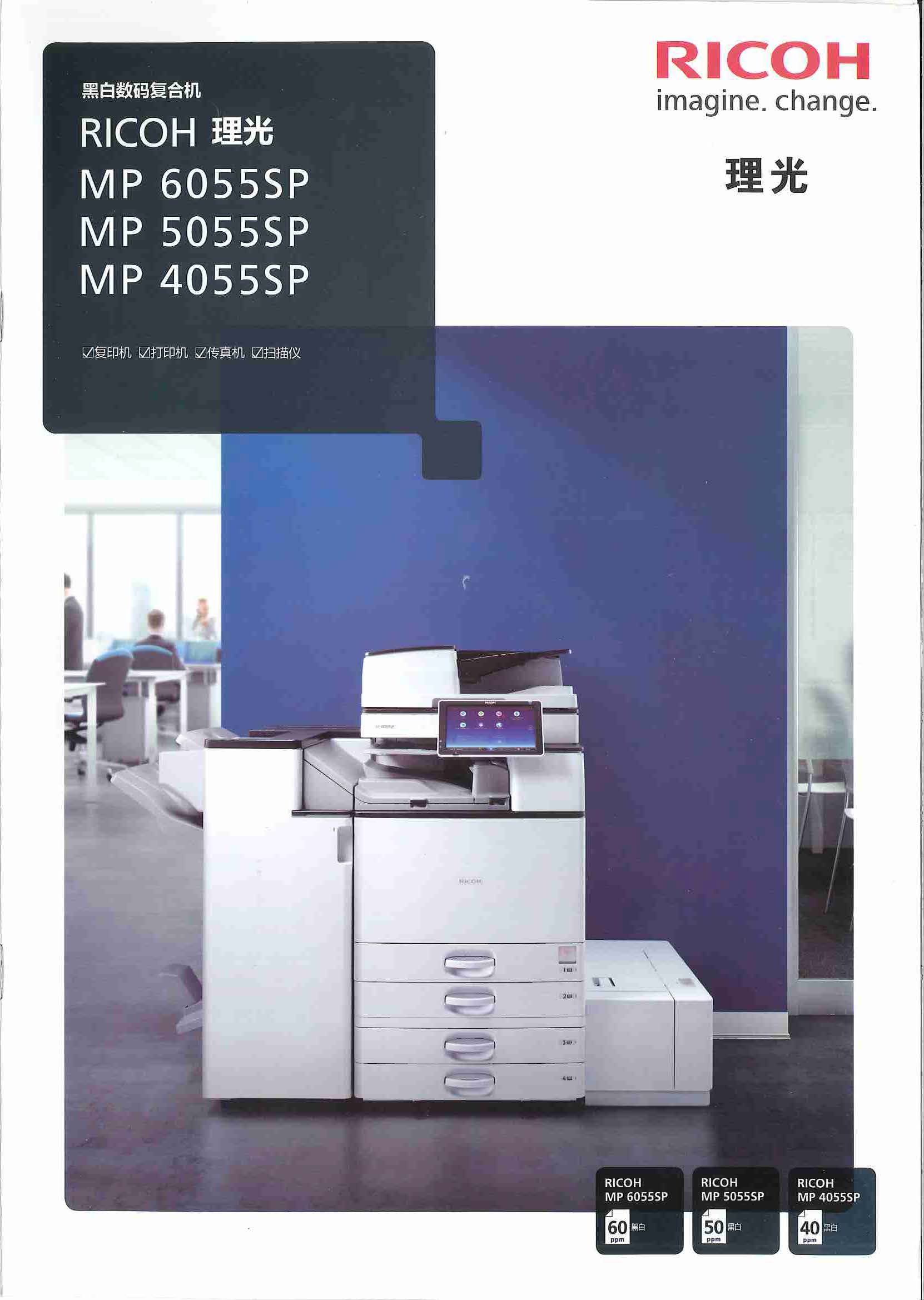 理光(RICOH)MP 5055SP 黑白數(shù)碼復(fù)合機(jī) A3幅面 打印/復(fù)印/掃描 雙紙盒 同步輸稿器 工作臺(tái) 1年保修