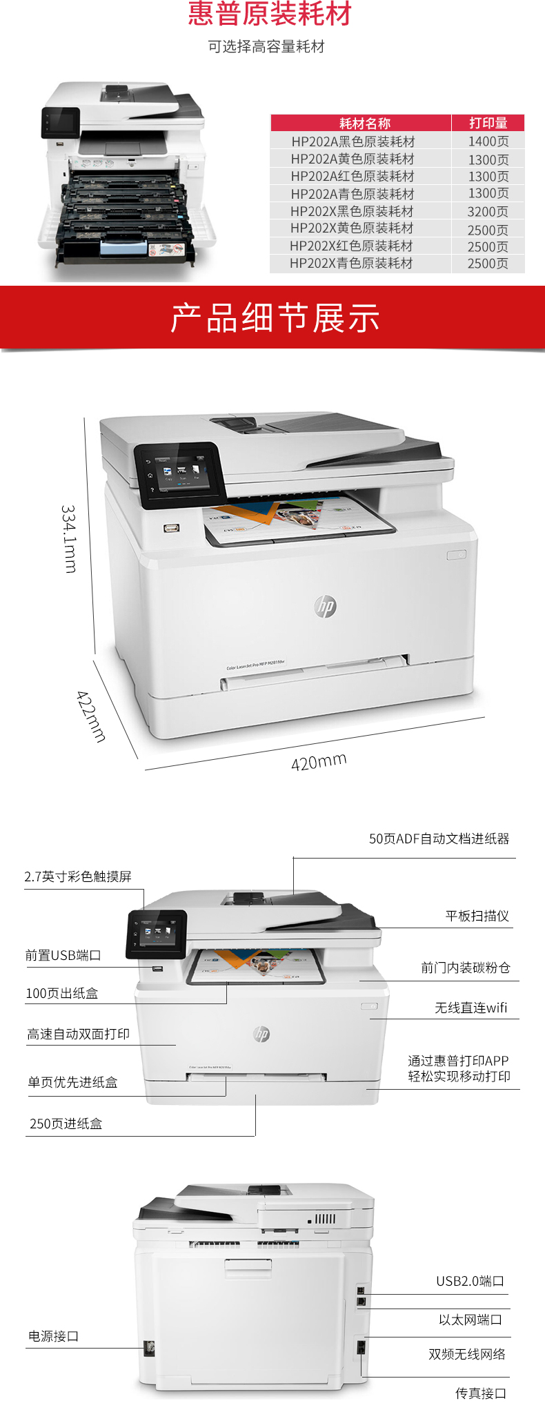 - 商品名稱:惠普(HP)Color LaserJet Pro MFP M281fdw 彩色多功能一體機(jī)