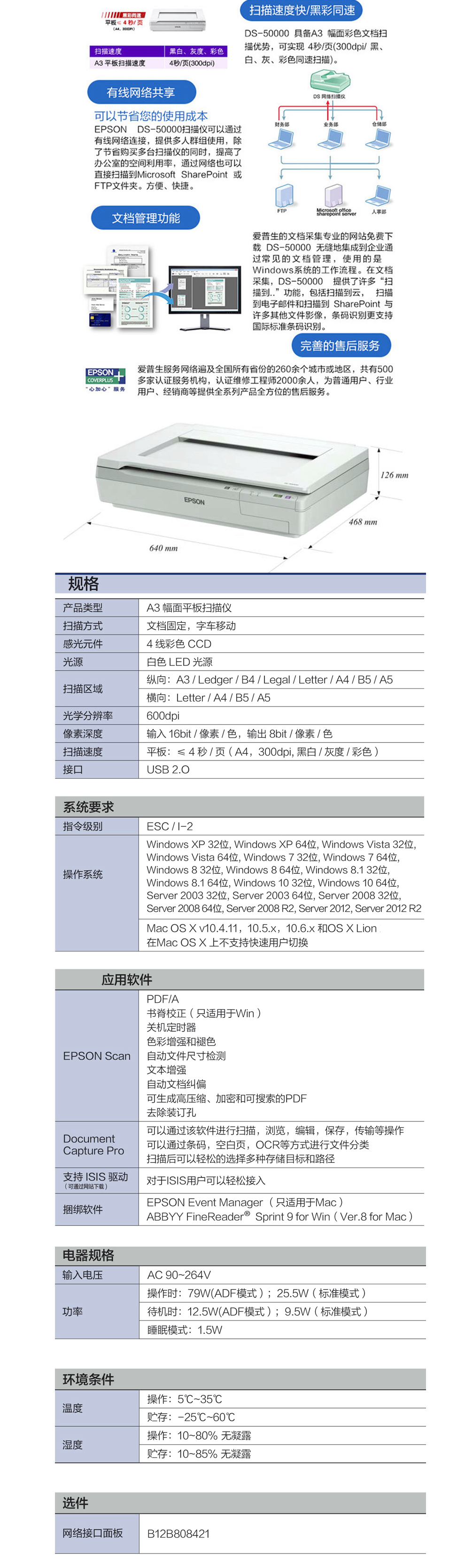 • 商品名稱:愛普生 DS-50000 A3 彩色文檔掃描儀