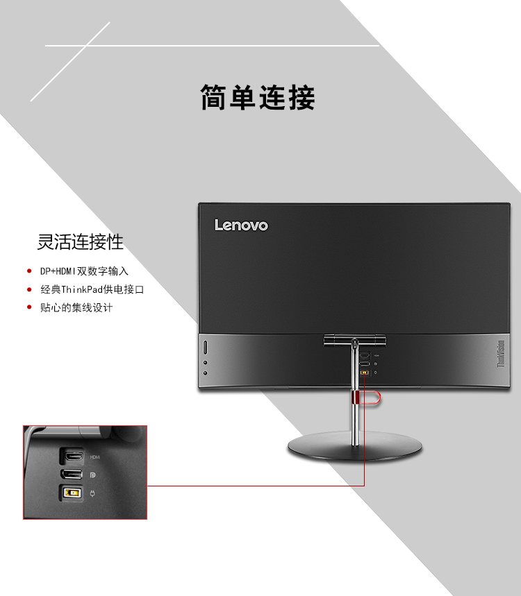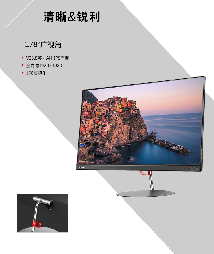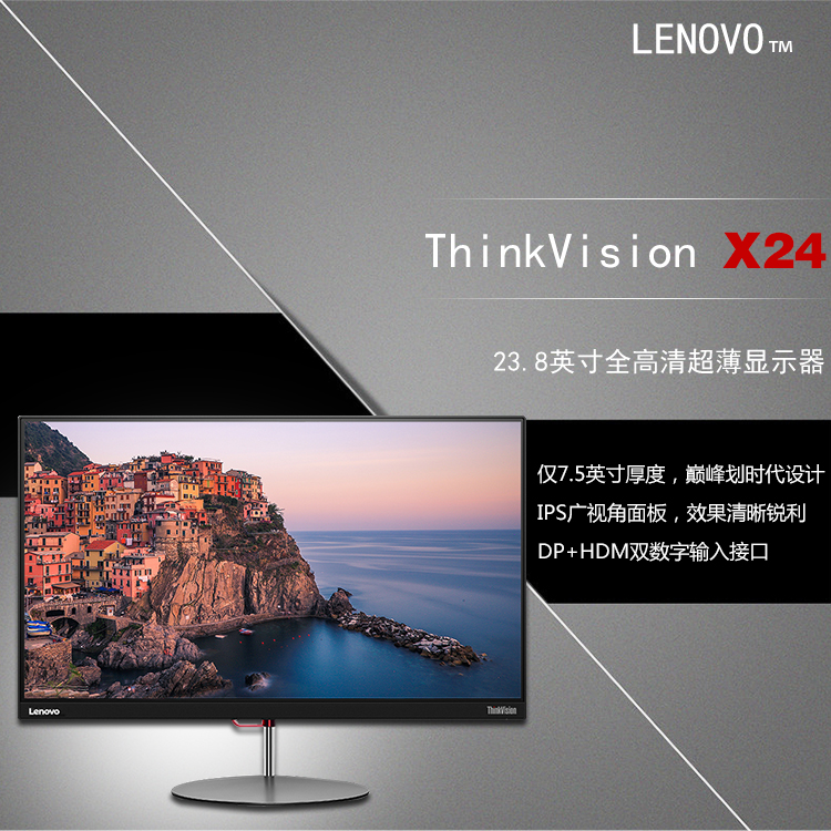 聯(lián)想(Lenovo)ThinkVision TE24-10 23.8英寸液晶顯示器 DP/HDMI/VGA接口 1920X1080分辨率 IPS面板 屏幕比例16:9 三年保修