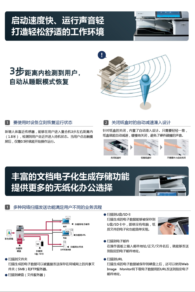 • 涵蓋網(wǎng)絡(luò)功能:復(fù)印/打印/掃描