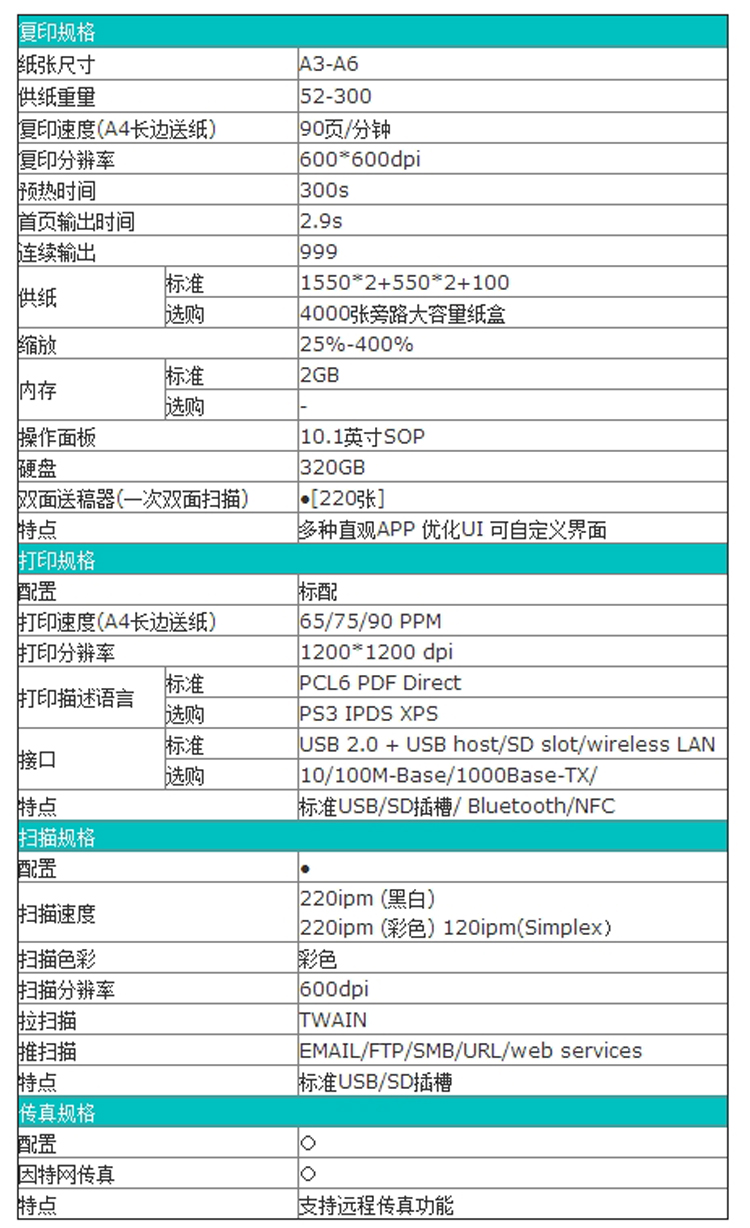 • A4復(fù)印速度(黑白):90頁/分鐘