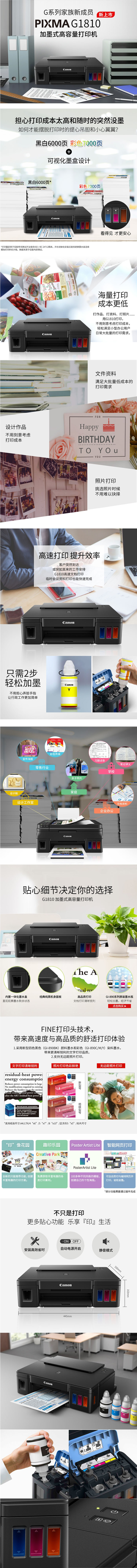 - 商品名稱:佳能(Canon) G1810 A4幅面加墨式高容量彩色噴墨打印機