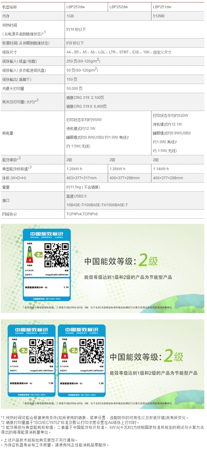 • 商品名稱:佳能(Canon)imageCLASS LBP252dw黑白激光打印機
