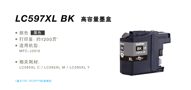 兄弟(brother)LC-597XLBK 黑色 墨盒 適用于兄弟2510機(jī)