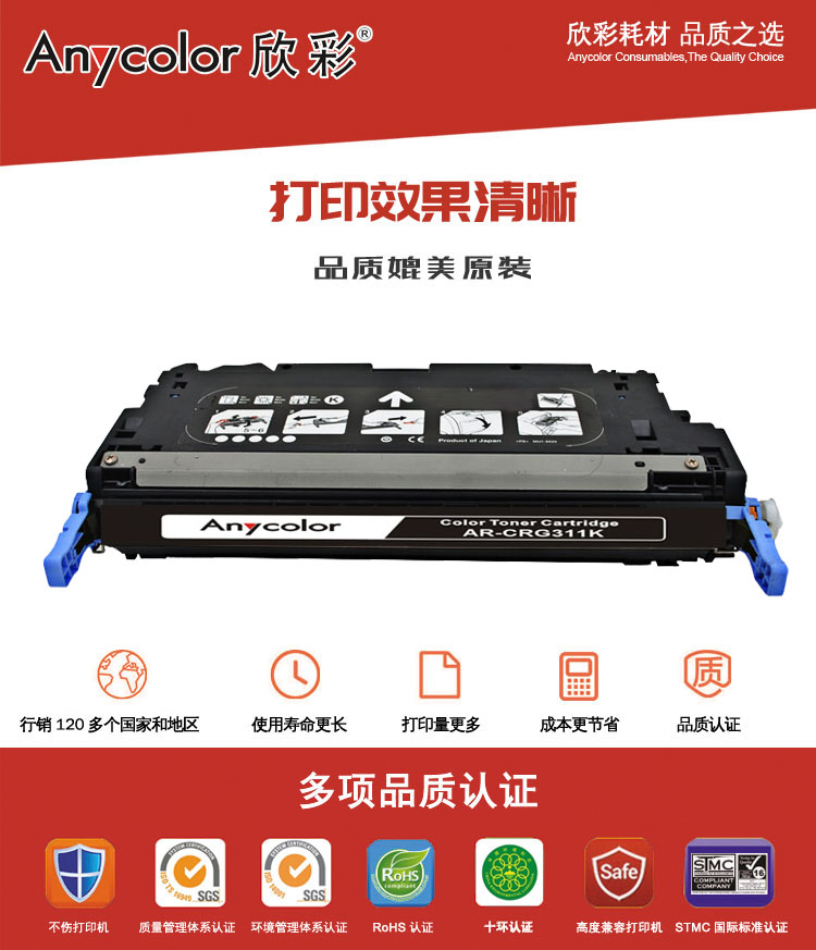 欣彩Anycolor AR-CRG311K彩色硒鼓/墨粉盒適用佳能CRG 311BK,CANON LBP 5300