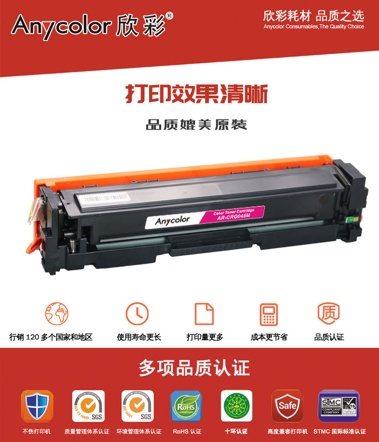 欣彩Anycolor AR-CRG045M(紅色)彩色硒鼓/墨粉盒適用佳能CRG045M,Canon 610C/611C