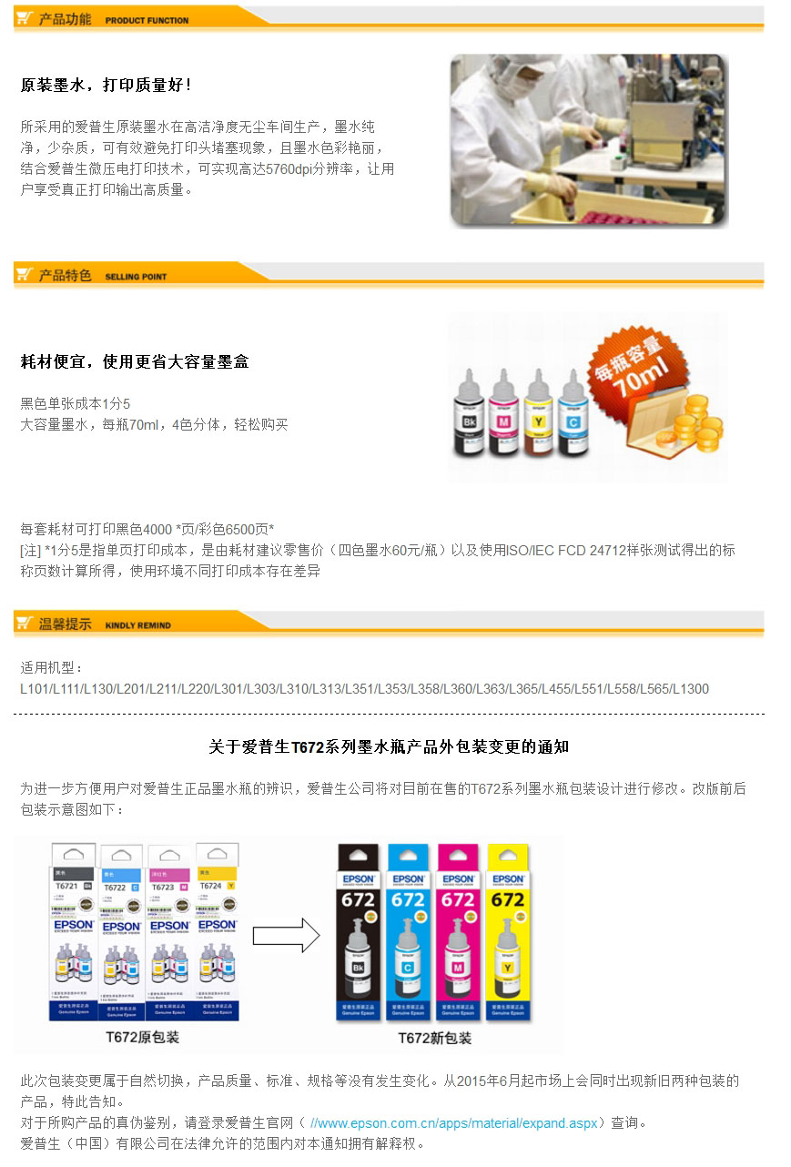 - 商品名稱:愛普生(EPSON)T6721 黑色墨水瓶(適用L220/L310/L313/L211/L360/L380/L455/L385/L485/L565)6721