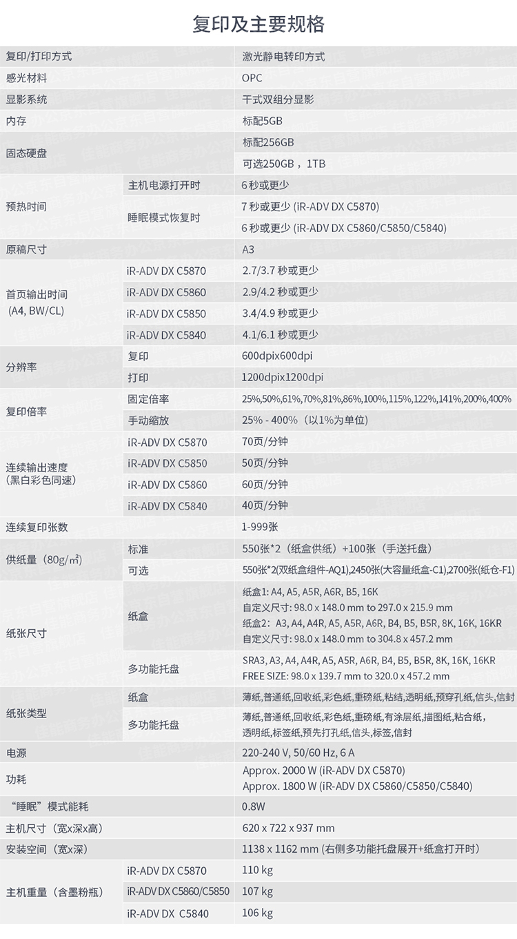 • 商品名稱:佳能(CANON)iR-ADV C5870 A3彩色激光數(shù)碼復(fù)合機(雙面打印/復(fù)印/掃描/WiFi)含輸稿器四紙盒鞍式裝訂