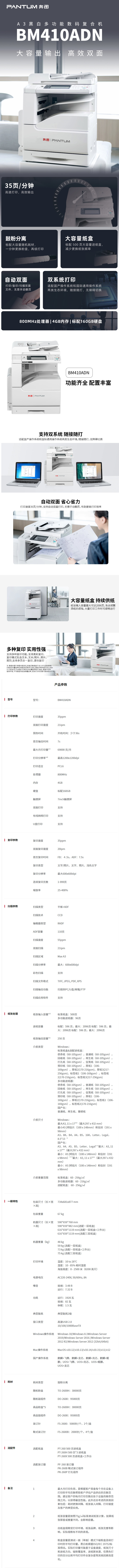 • 商品名稱:奔圖(Pantum)BM410ADN A3黑白數(shù)碼復合機 打印復印掃描一體 標配主機+雙面器+雙面送稿器+單紙盒