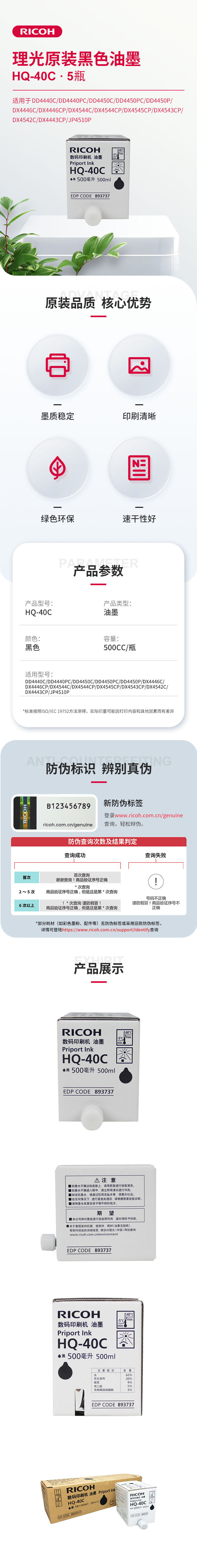 - 商品名稱:理光(Ricoh) HQ-40C 黑色油墨 5支/盒 (適用 DD4440C/4440PC/4450C/4450PC/4450P)