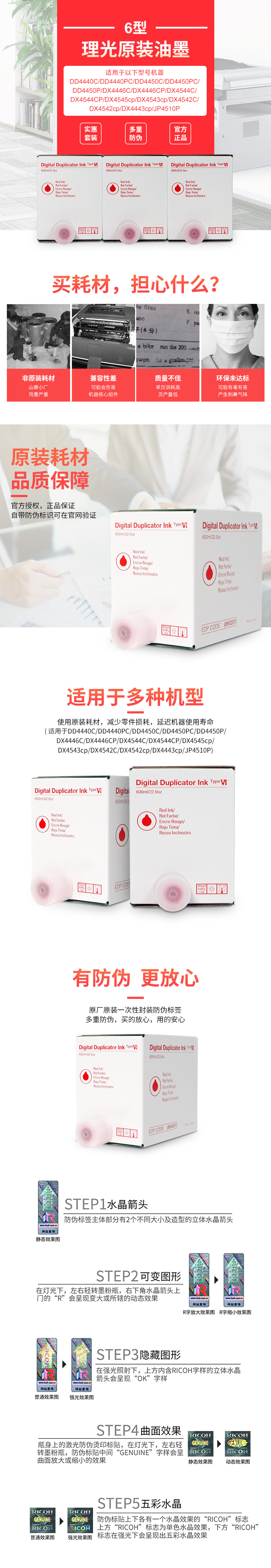 - 商品名稱:理光(Ricoh)6型(600cc/瓶*5支)紅油墨