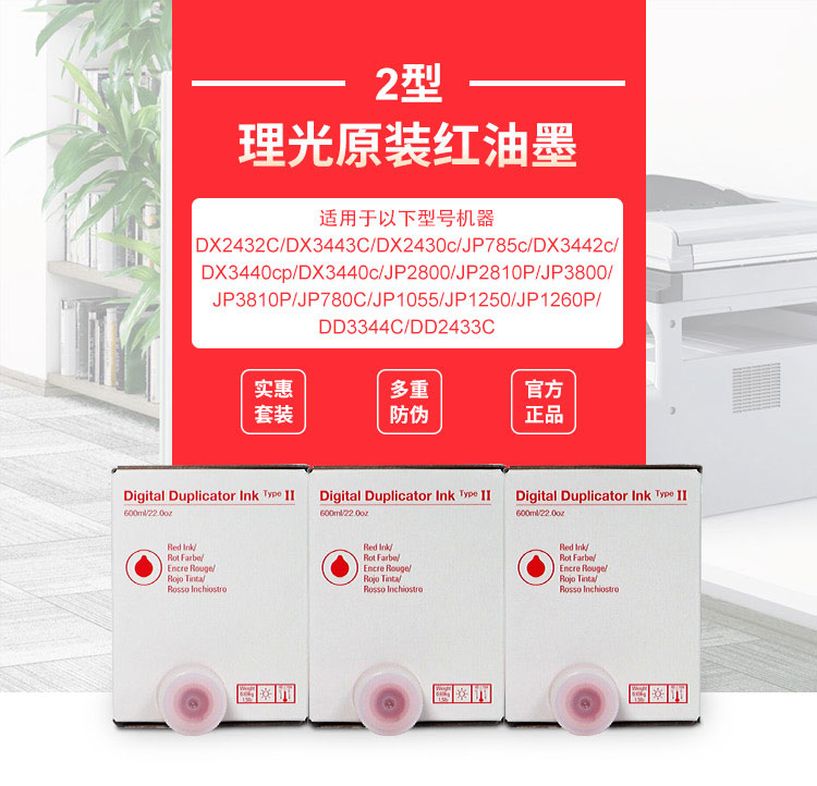 • 商品名稱:理光(Ricoh)2型(600cc/瓶*5支)紅油墨