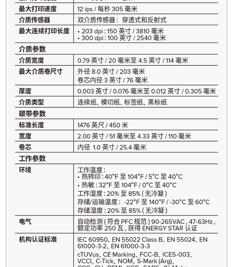 • 性能:打印材料 :銅版紙;合成紙;PET
