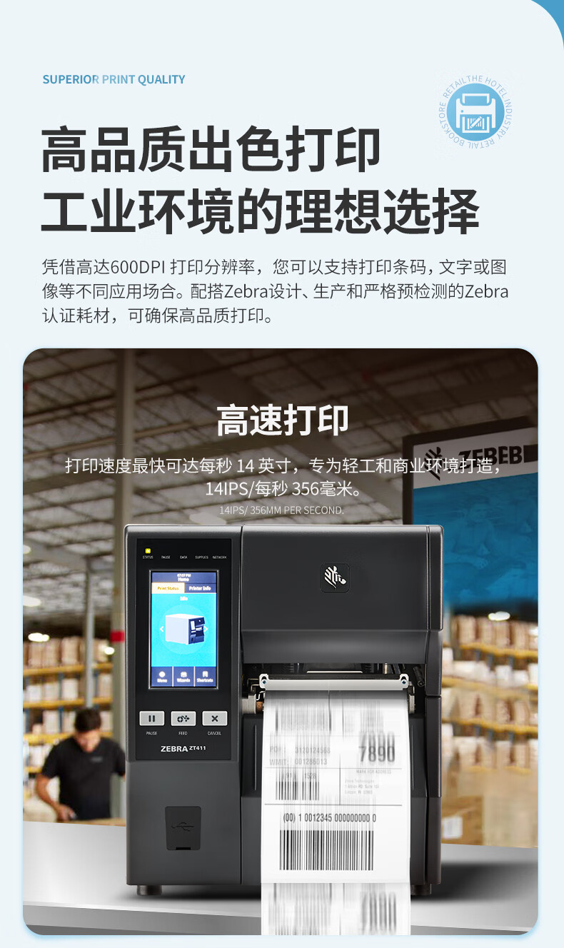 斑馬(ZEBRA)ZT411 標(biāo)準(zhǔn)4英寸打印機(jī)(300dpi)工業(yè)型條碼機(jī)固定資產(chǎn)二維碼不干膠標(biāo)簽打印機(jī) ZT410升級款