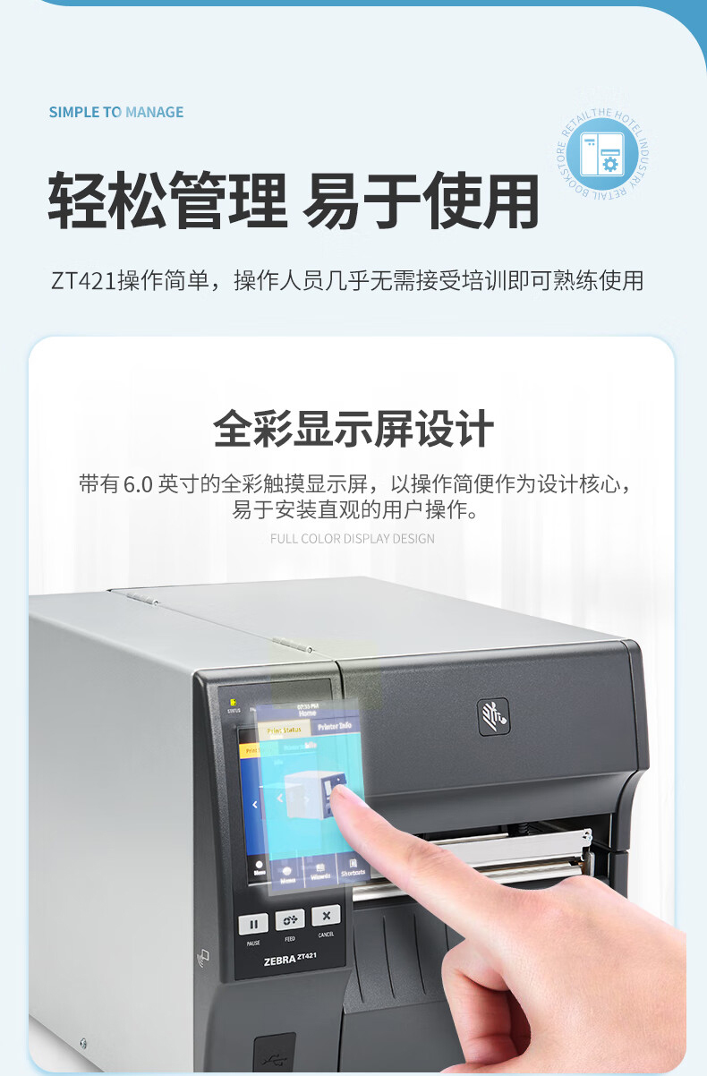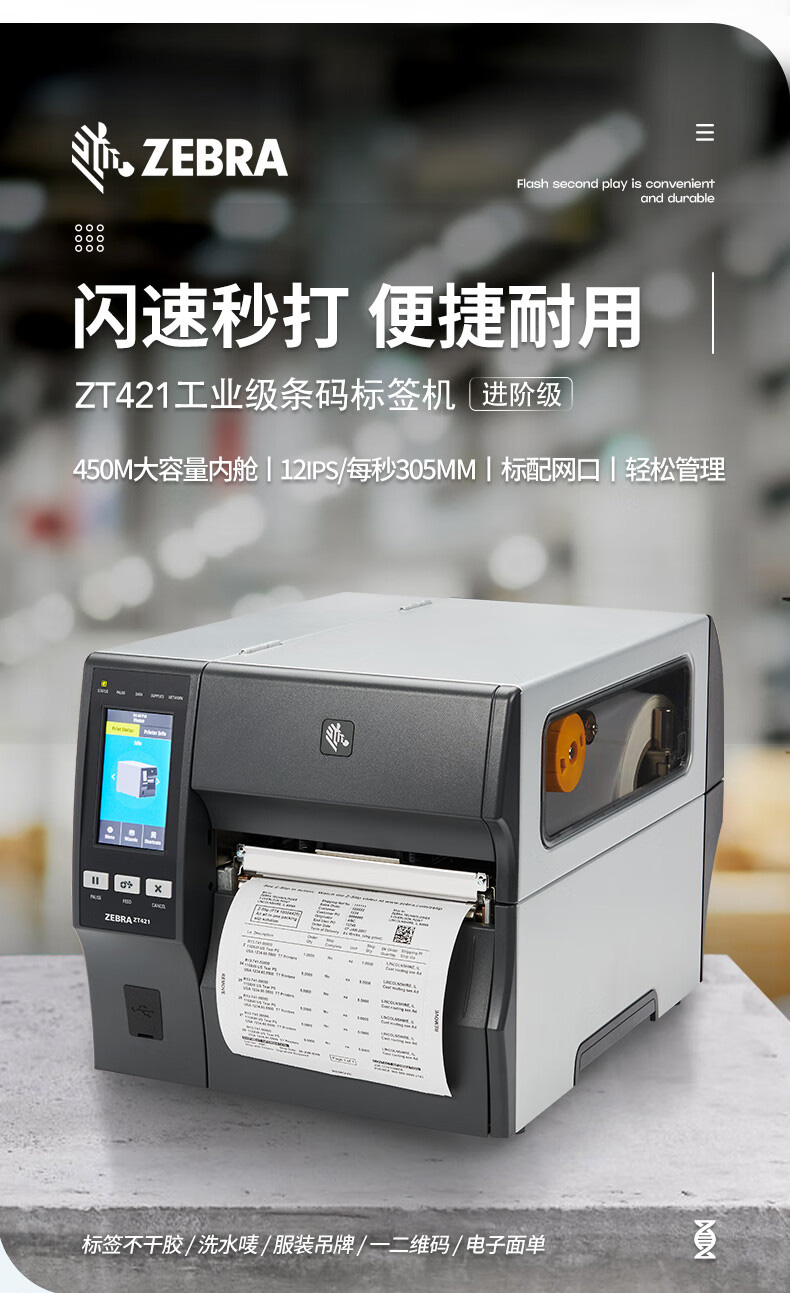 • 商品名稱:斑馬(ZEBRA)ZT421 寬幅6英寸打印機(jī) (203dp)工業(yè)型條碼機(jī)固定資產(chǎn)二維碼不干膠標(biāo)簽打印機(jī) ZT410升級款