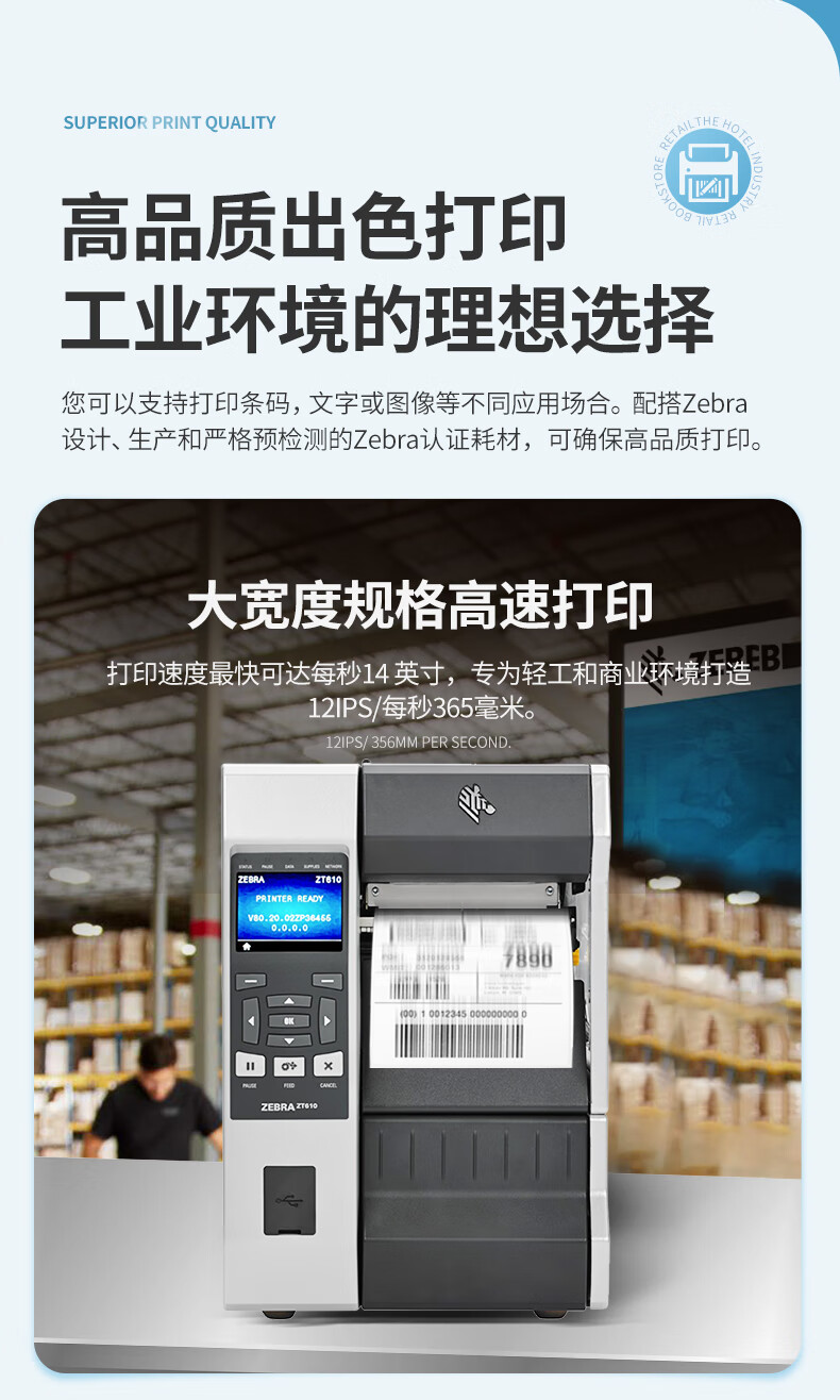• 商品名稱:斑馬(ZEBRA)ZT610 標(biāo)準(zhǔn)4英寸打印機(203dpi)工業(yè)型不干膠標(biāo)簽吊牌水洗標(biāo)條碼打印機 金屬標(biāo)簽打印機 110XI4升級款
