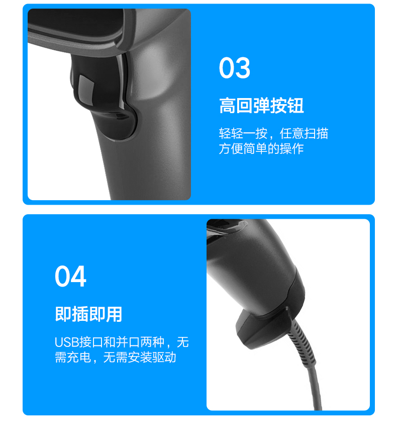 • 性能:有線一二維碼條碼槍條碼槍掃碼器