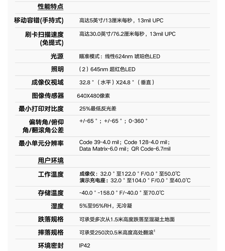 • 規(guī)格:抗震能力 1-1.5M 產(chǎn)品凈重 200g 掃描精度 其他
